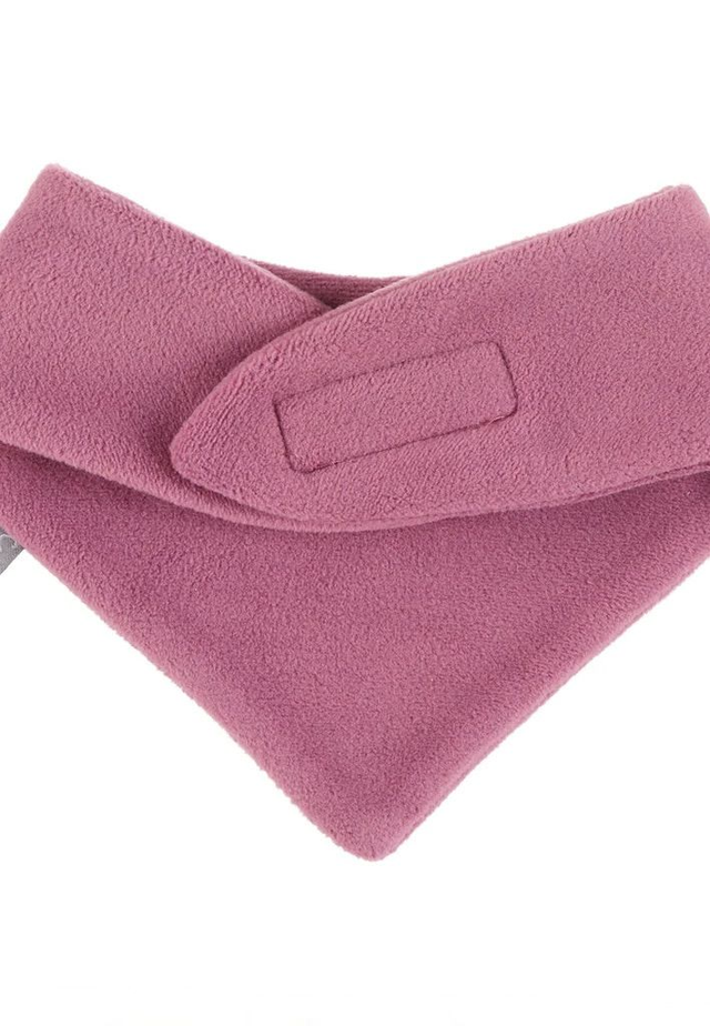 pink/magenta micro fleece, lined triangular scarf in plain color with Velcro closure