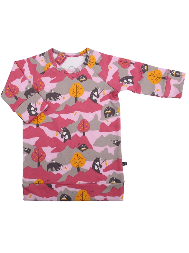 long sleeves raspberry with print, in soft organic cotton